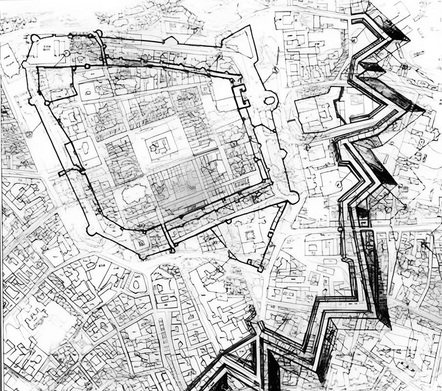 Согласно плану Беренса, должны были объединить в единый оборонный комплекс Высокий Замок и ряд укрепленных пригородных монастырей. Но успели лишь насыпать вал от монастыря кармелитов босых (Церкви св. Михаила) до монастыря обутых кармелитов (на нынешней улице Князя Романа). Укрепленные фортификации были длиной ориентировочно 1770 метров, ширина главного вала бастиона у основания имела примерно 15 метров.