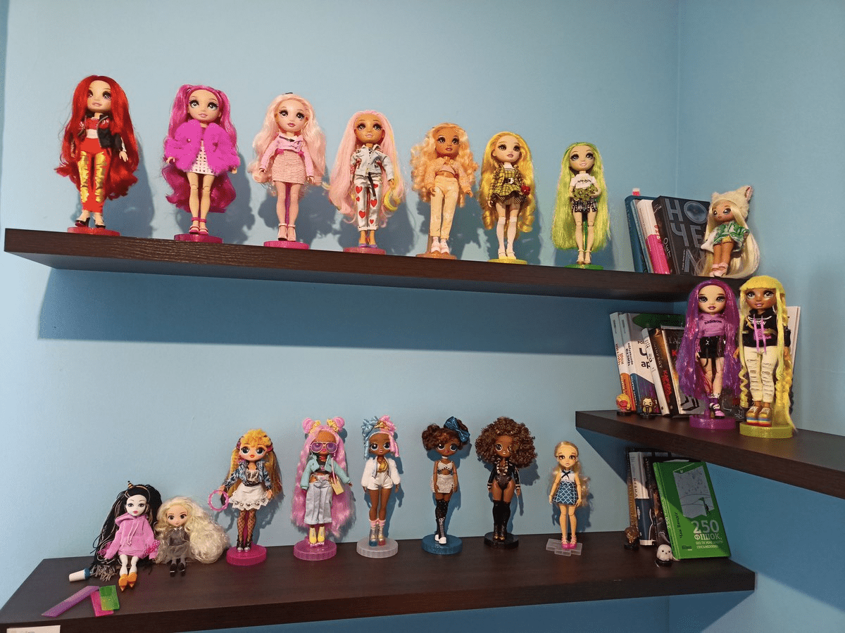 Этот же производитель выпустил довольно успешные бренды, на которых сосредоточена коллекция Татьяны: Rainbow High и L.O.L. Surprize! Линейки первого бренда содержат по 6 кукол в разных цветах радуги (не 7, потому что не в каждой стране отдельно различают голубой и синий).