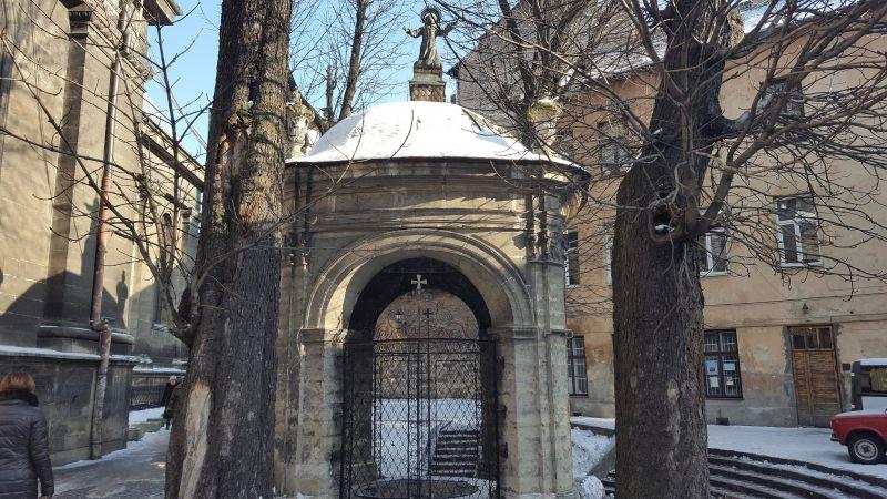 Біля церкви знаходиться старовинна криниця, з якою пов’язано справжнє диво. За легендою, після того, як на цьому місті поховали Святого Яна з Дуклі через рік з’явилося цілюще джерело. Тоді монахи вирішили перенести мощі святого в середину будівлі та помістити біля вівтаря.