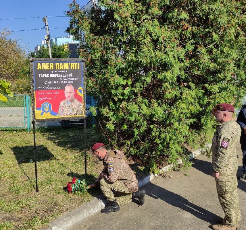 А ко Дню защитника и защитниц Украины, в октябре 2022 года, во Львове открыли Аллею памяти в честь еще одного храброго воина Тараса Жеребецкого, павшего в боях с российскими захватчиками. Каждое дерево на аллее Героя будет символизировать жизнь, за которую он и боролся.