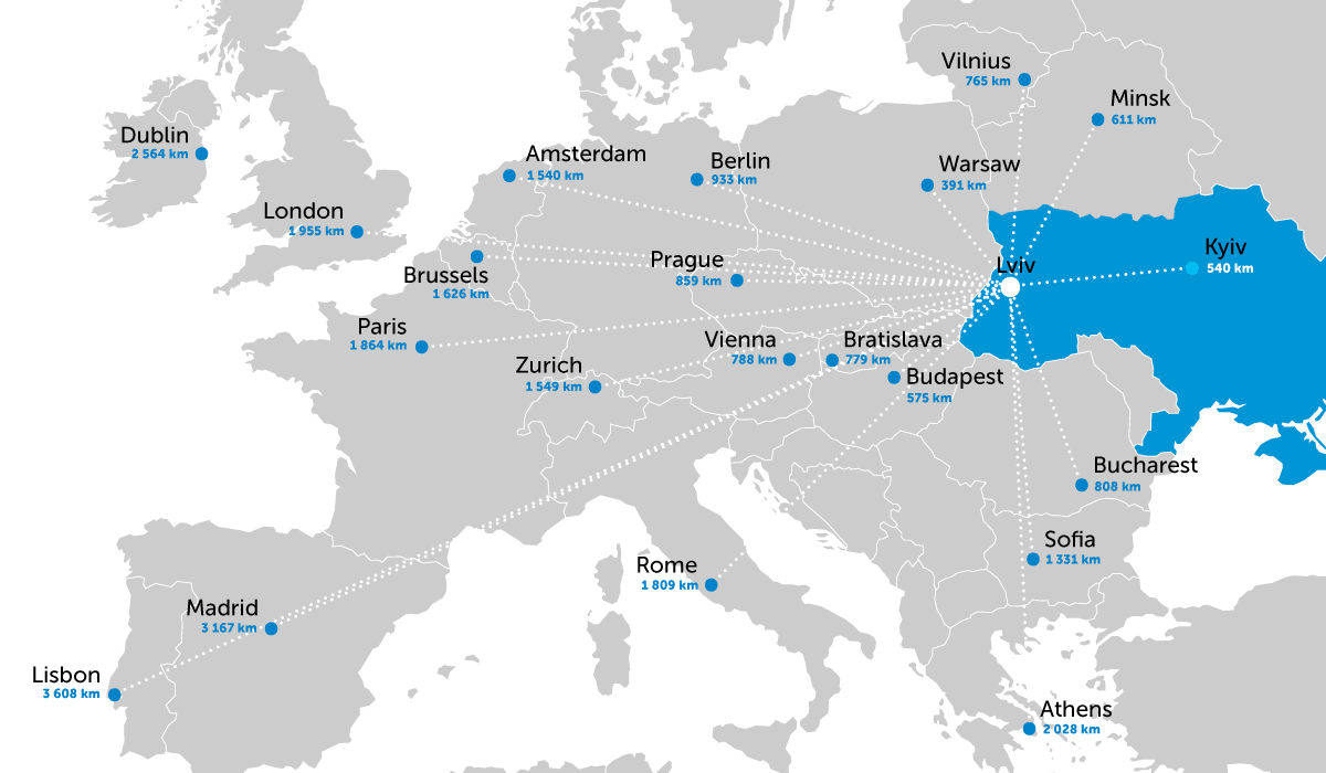З усіх великих IT хабів України, Львів знаходиться найближче до кордонів ЄС. Декілька годин польоту – і ви вже в Берліні чи Барселоні. Аеропорт Львова обслуговує близько чотирьох десятків напрямків, і з’єднує місто з більшою частиною Європи і Північної Америки.