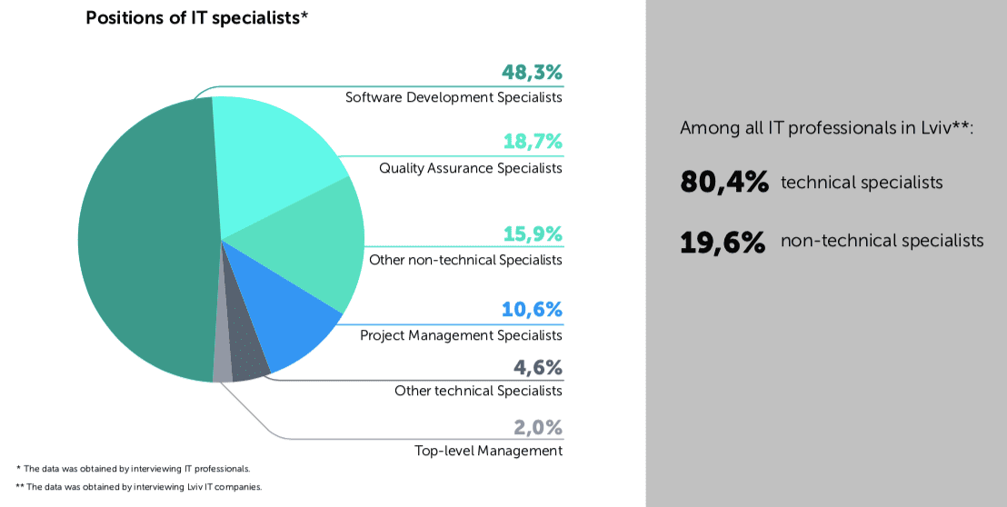 За даними дослідження від Lviv IT Cluster, кількість IT спеціалістів, що працюють в місті, виросла до 25 000 людей. За останні 4 роки ринок виріс більш ніж на 80%.